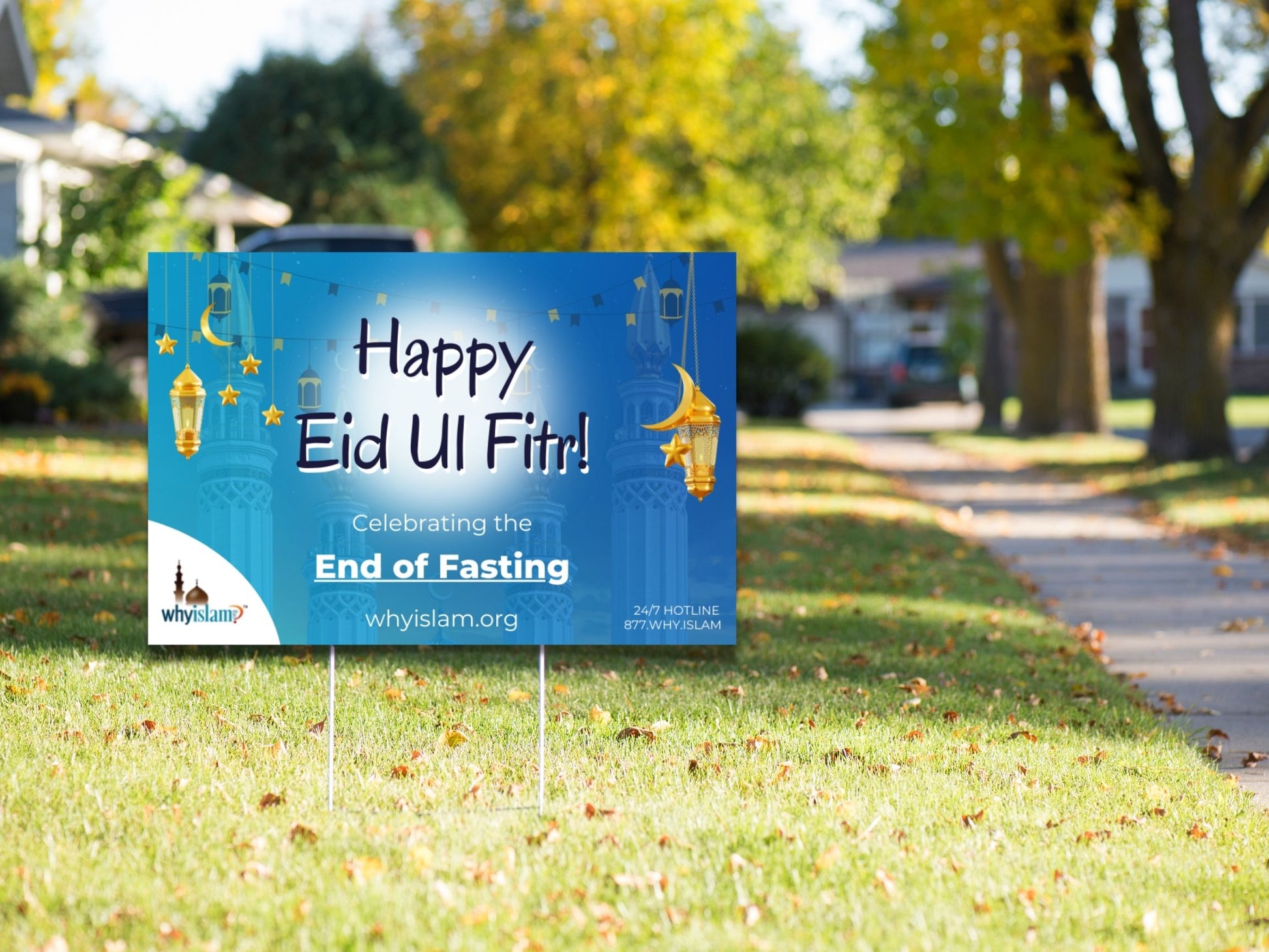 Let your neighbors know you're celebrating Eid with WhyIslam's Happy Eid ul Fitr lawn sign!